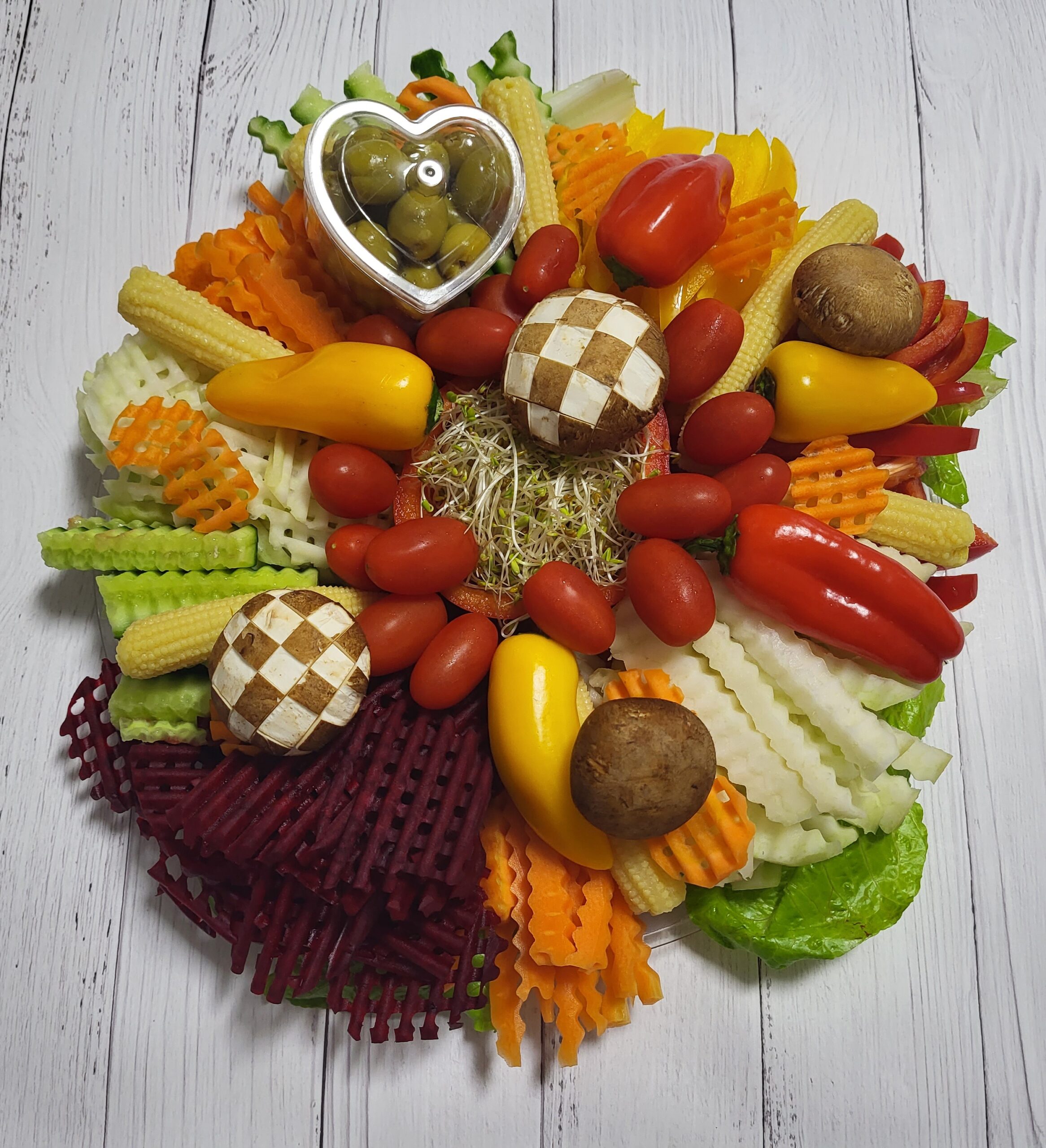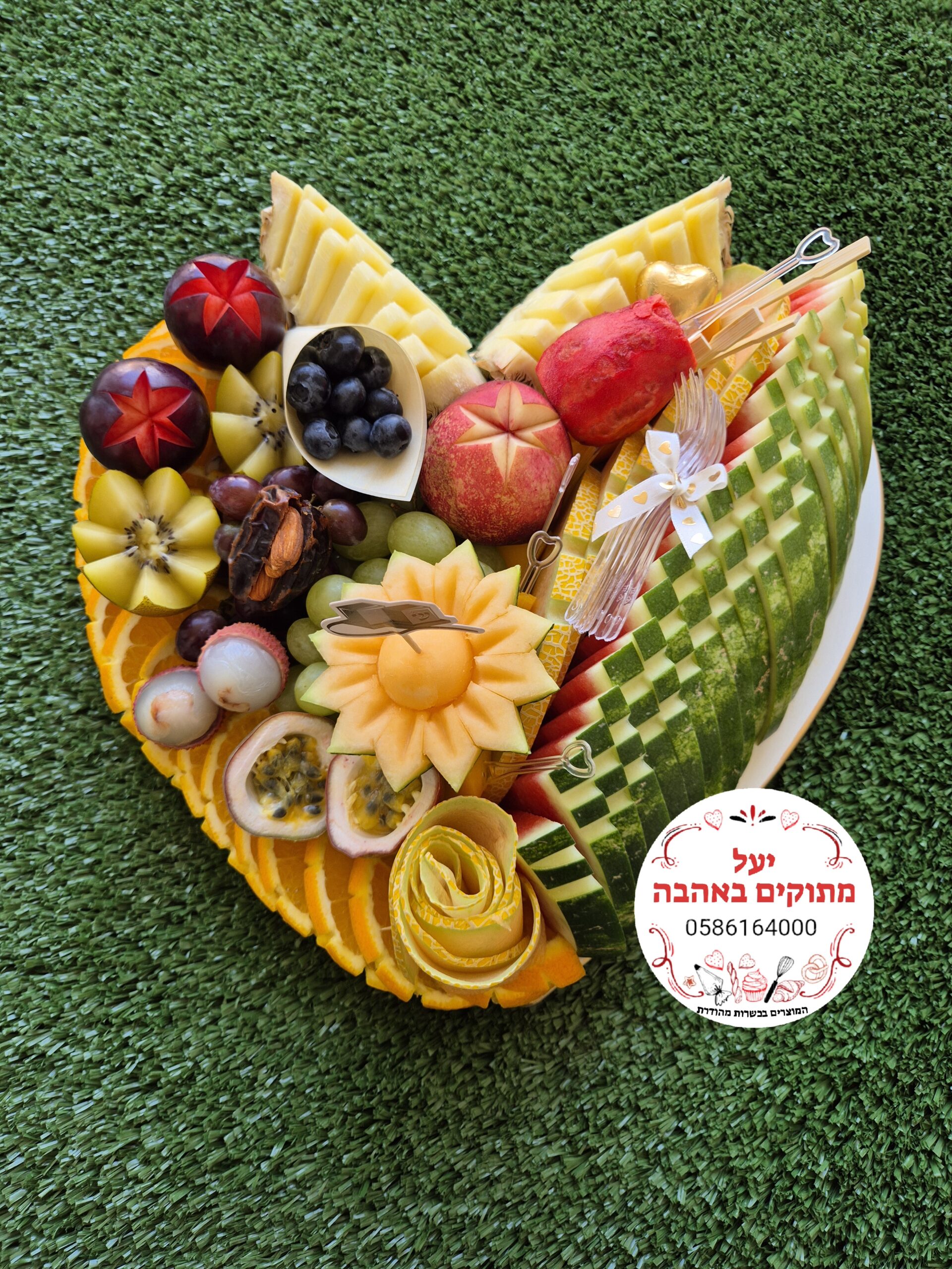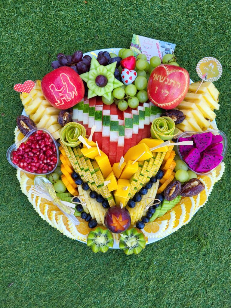 מיגוון גדלים צורות ועיצובים של מגשים מפירות העונה המשובחים והטריים ביותר, ממגשים זוגיים ועד עיצוב ברים בתוספת פירות מגולפים.