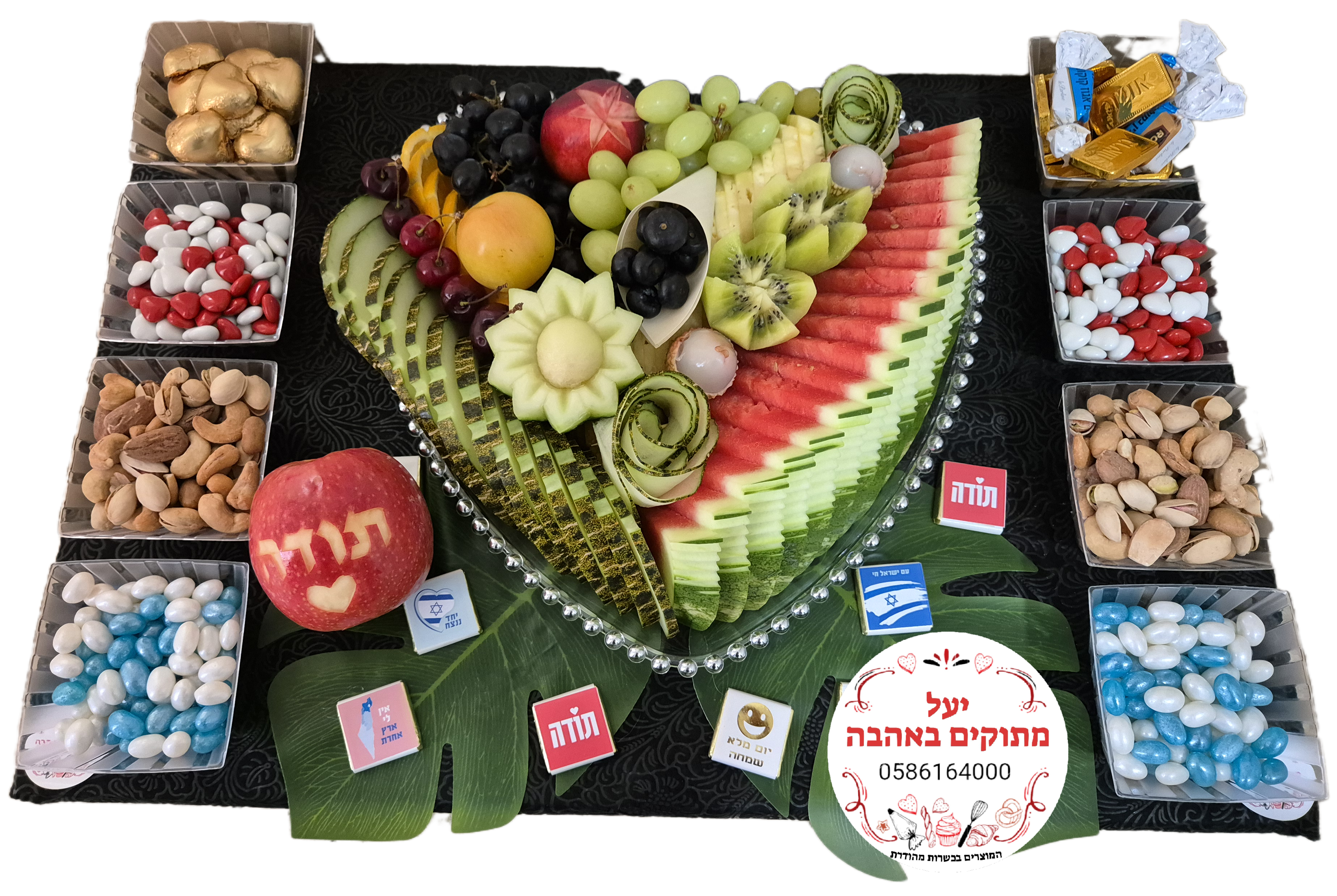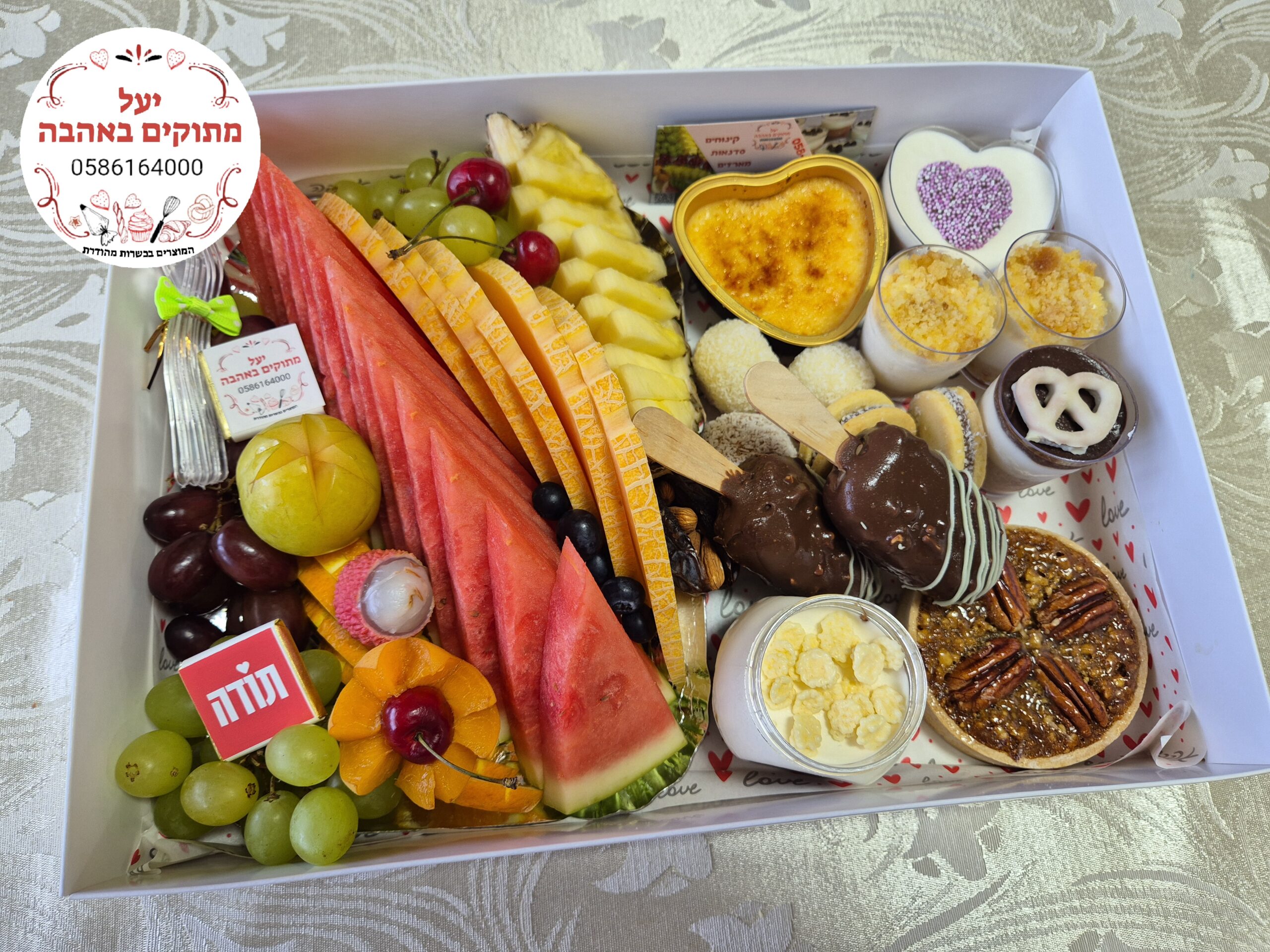מבחר מגשי פירות עוגות מעוצבות מארזים מתוקים ושאר קינוחים ופינוקים